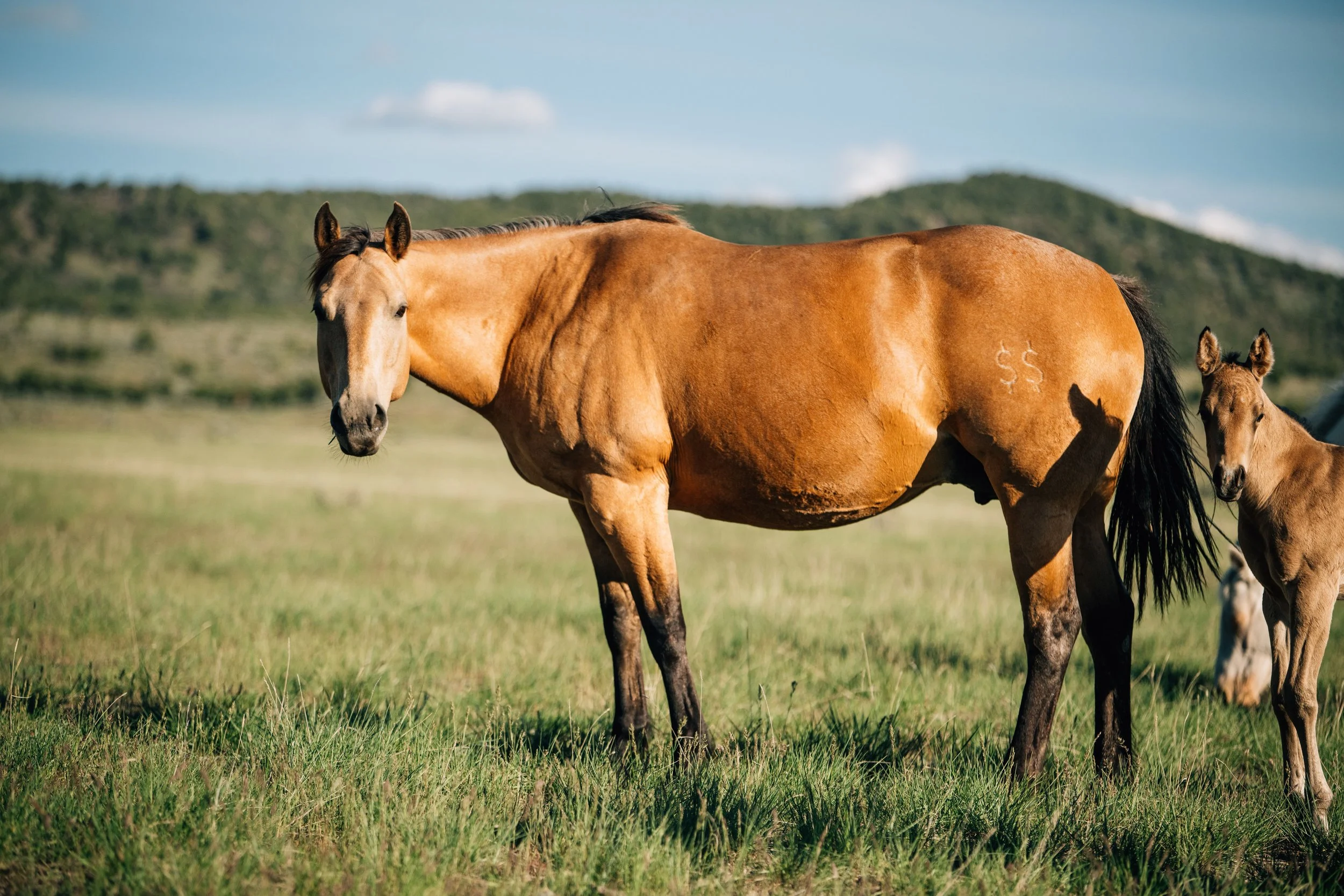Our breeding program began with a select group of elite, barrel-bred mares—selected for their proven pedigrees, conformation and performance potential. In 2024, we acquired a band of exceptional broodmares from the Kesler Ranch, each carrying the signature Double Dollar ($$) brand. These mares were raised in a similar environment and bring with them generations of practical, ranch-proven production. Their transition into our program was seamless, and they’ve continued to produce strong, dependable colts and fillies under our ownership.