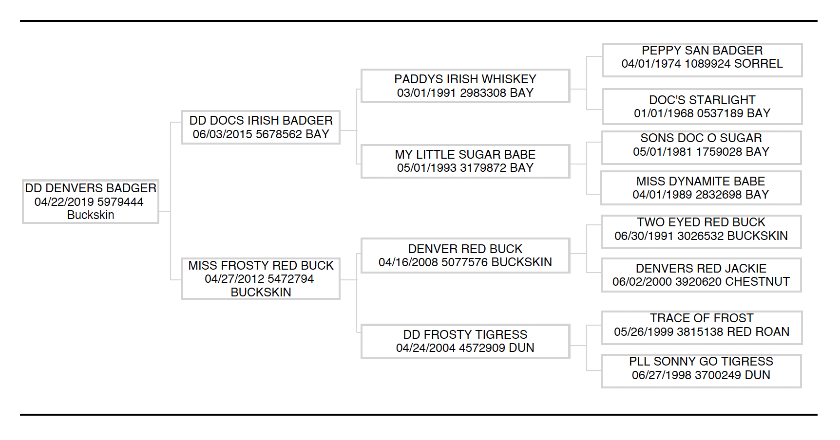 DD Denvers Badger DD Docs Irish BadgerMiss Frosty Red Buck Aug 17 Written By Stacey Bailey By DD Docs Irish Badger x Miss Frosty Red Buck2024 Riata Championships - Open Heeling Champion Dylin Alhstrom and DD Denvers Badger | 2024 Riata Open Heeling Champions | Image by: Team Roping Journal Watch Video Read Story on Team Roping Journal Stacey Bailey